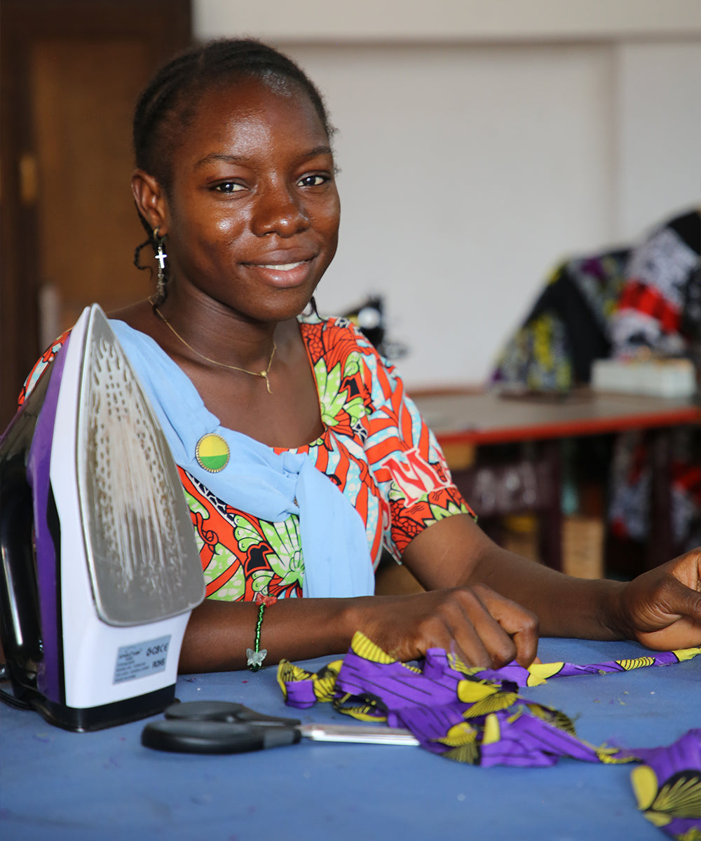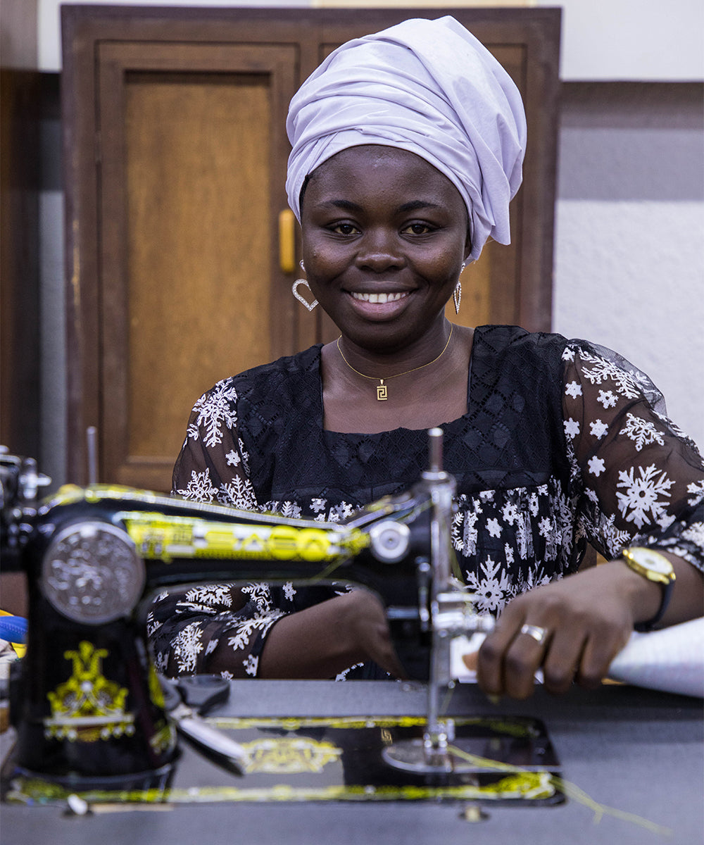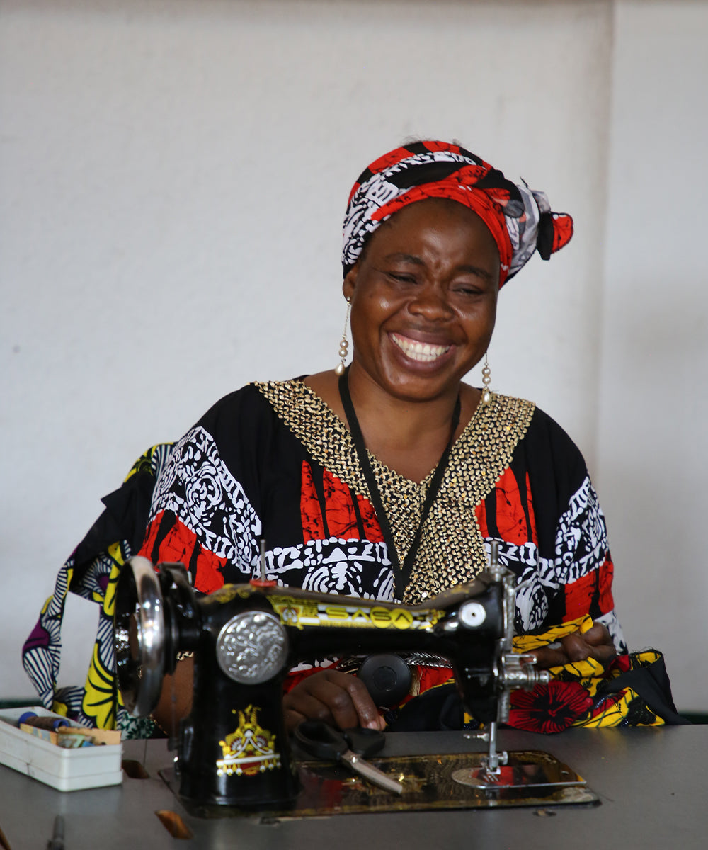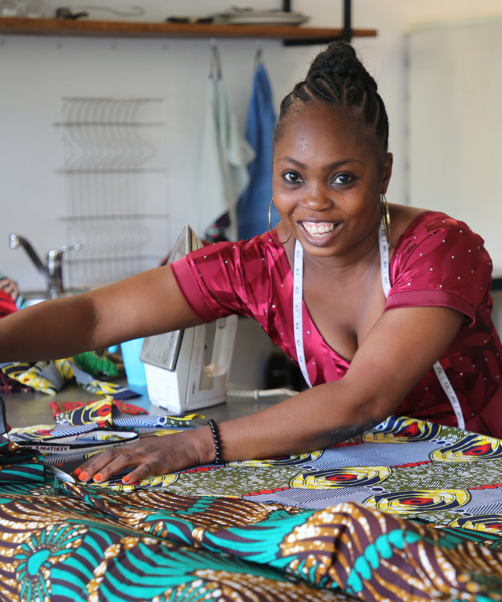 Jocelyne began with home-based tailoring, sewing masks during the pandemic. Today, she’s mastered new techniques, opened a workshop at home, and is raising four children while building toward lasting independence.