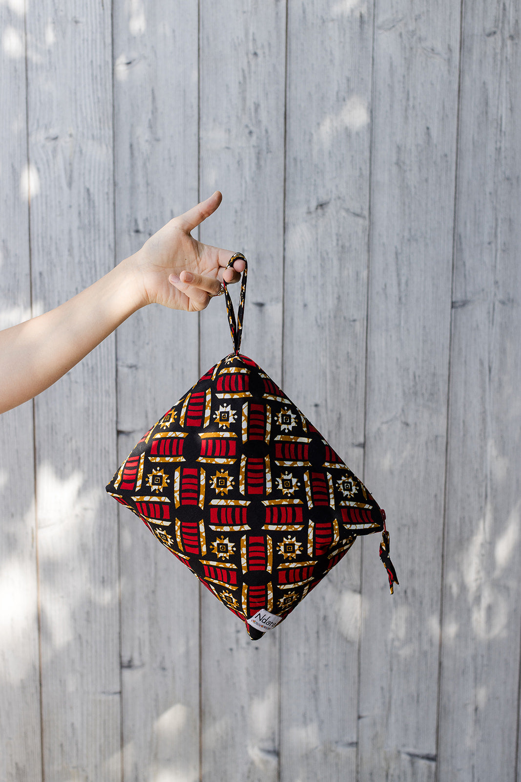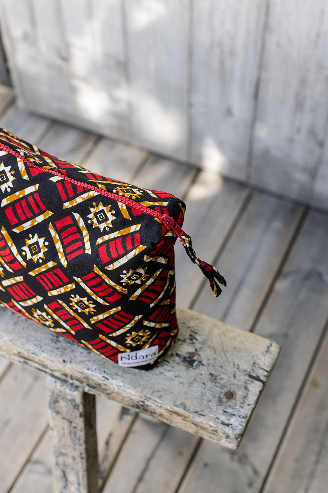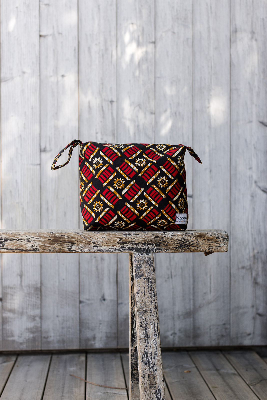 This lightweight and versatile rectangular pouch is handmade from vibrant wax print fabric. It features a sturdy structure thanks to a layer of starched cotton and a soft, unstarched cotton lining inside. Perfect for organizing small essentials — from cosmetics to electronics — while adding a splash of color, craft, and impact to your everyday carry.