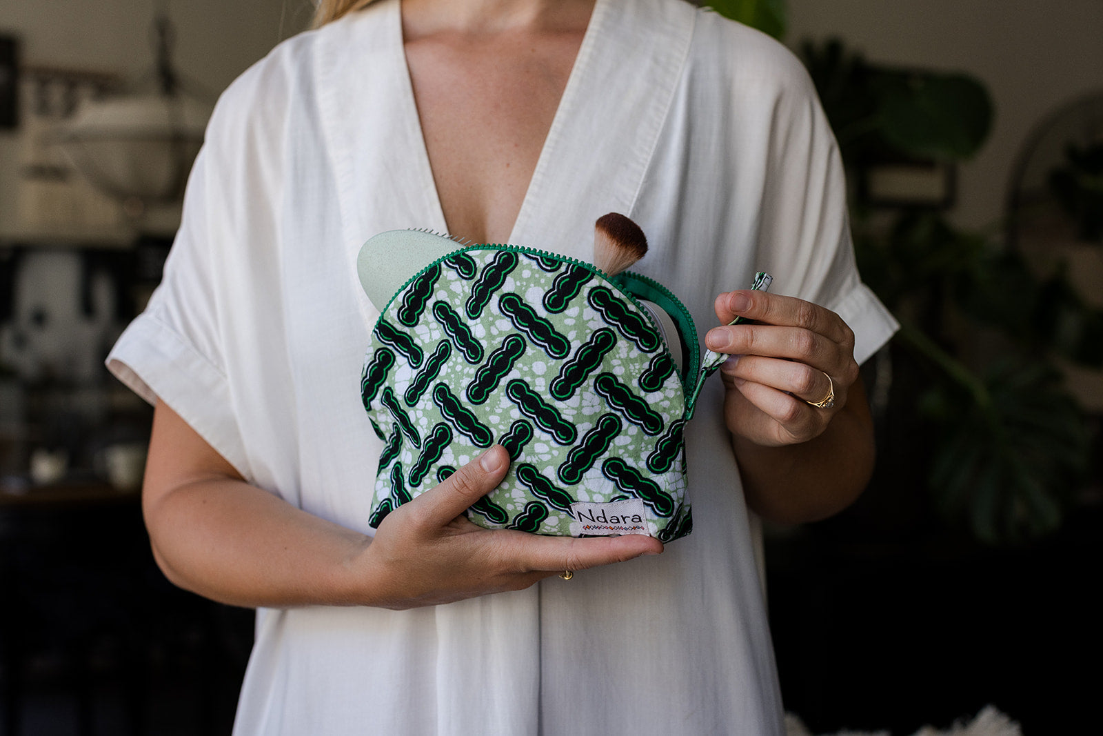 Handmade from bold wax print fabric, the Jocelyne Curve is a lightweight, structured oval pouch perfect for keeping your essentials organized — whether it's cosmetics, tech accessories, or everyday carry items. Stiffened with starched cotton and lined with soft unstarched cotton, it combines vibrant style with practical function.