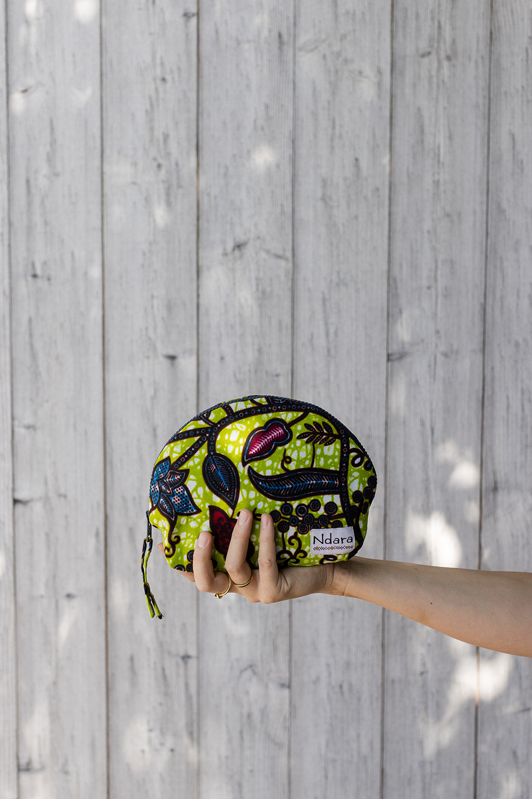 Handmade from bold wax print fabric, the Jocelyne Curve is a lightweight, structured oval pouch perfect for keeping your essentials organized — whether it's cosmetics, tech accessories, or everyday carry items. Stiffened with starched cotton and lined with soft unstarched cotton, it combines vibrant style with practical function.