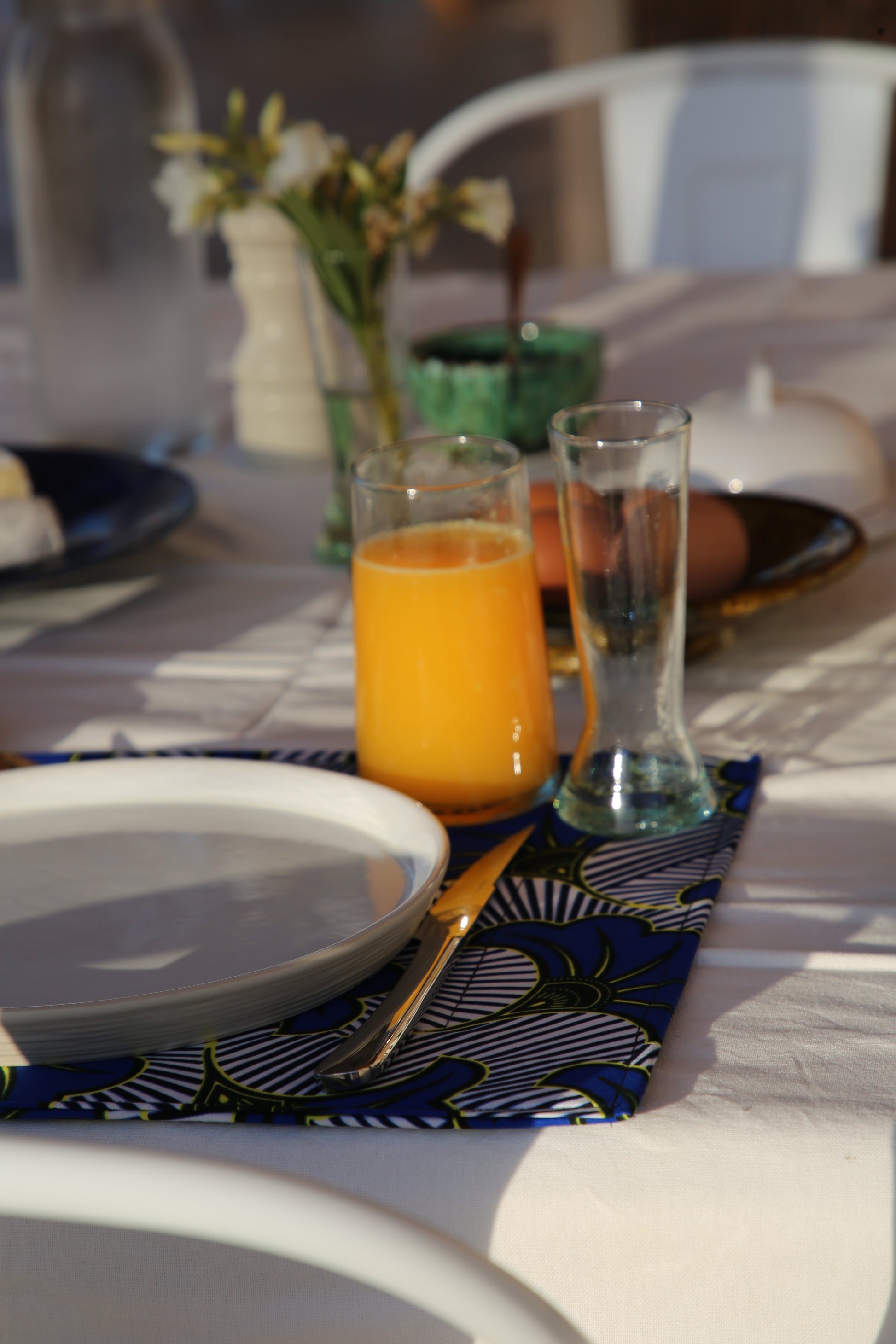 Add a vibrant touch to your table with our handcrafted wax print placemats. Made from 100% cotton and double-layered with starched fabric for structure and durability.