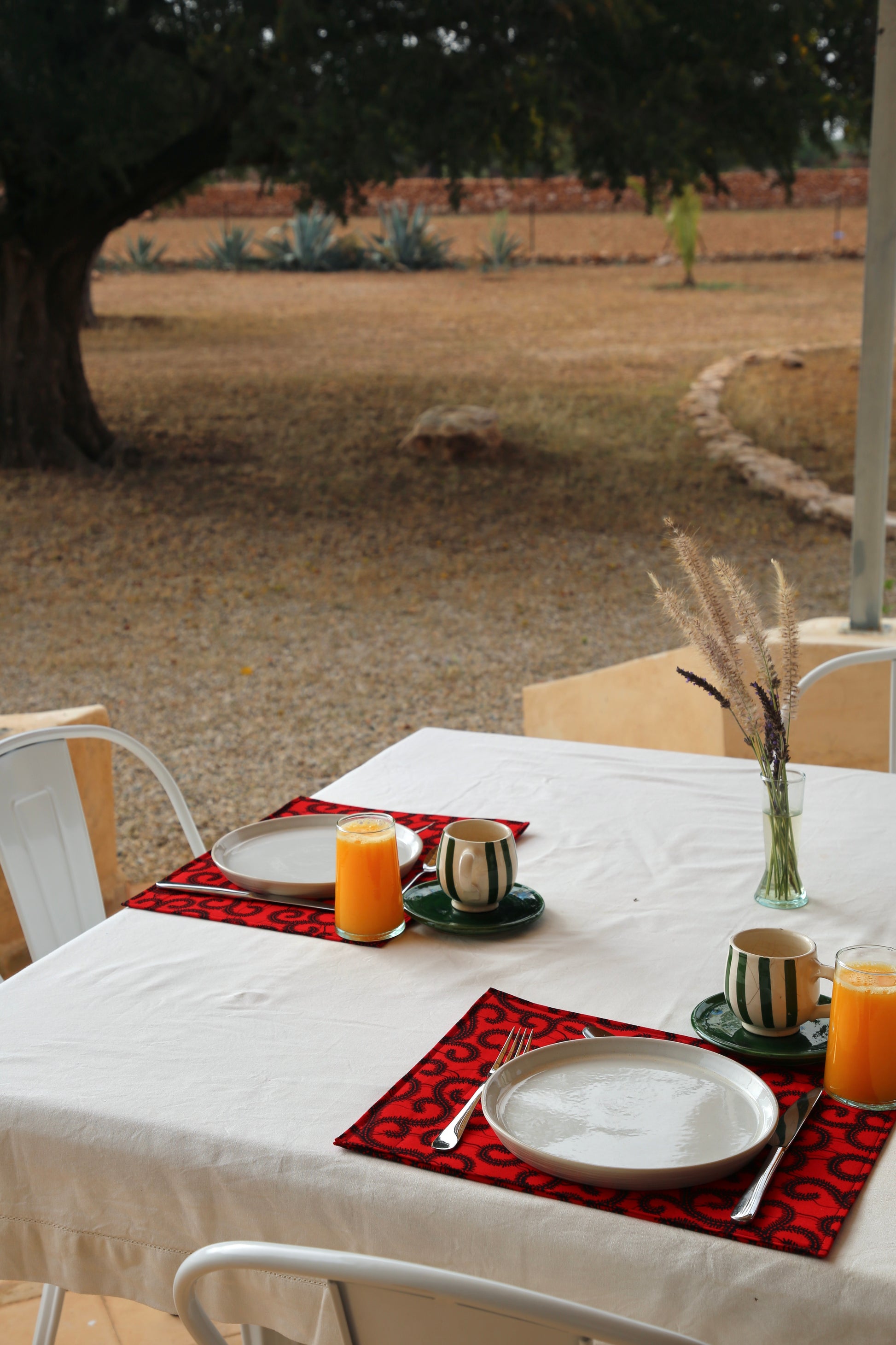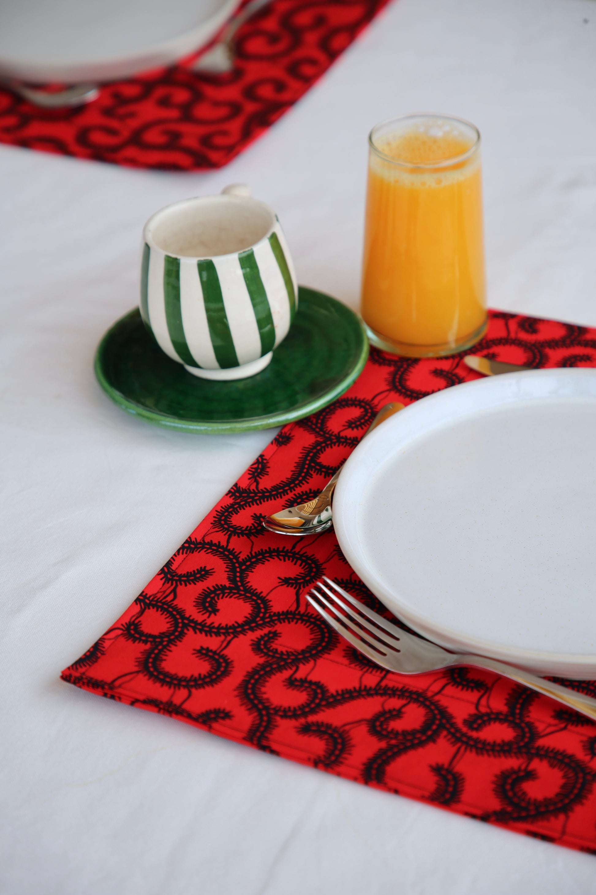 Add a vibrant touch to your table with our handcrafted wax print placemats. Made from 100% cotton and double-layered with starched fabric for structure and durability.