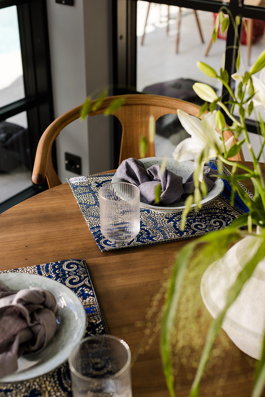 Add a vibrant touch to your table with our handcrafted wax print placemats. Made from 100% cotton and double-layered with starched fabric for structure and durability.