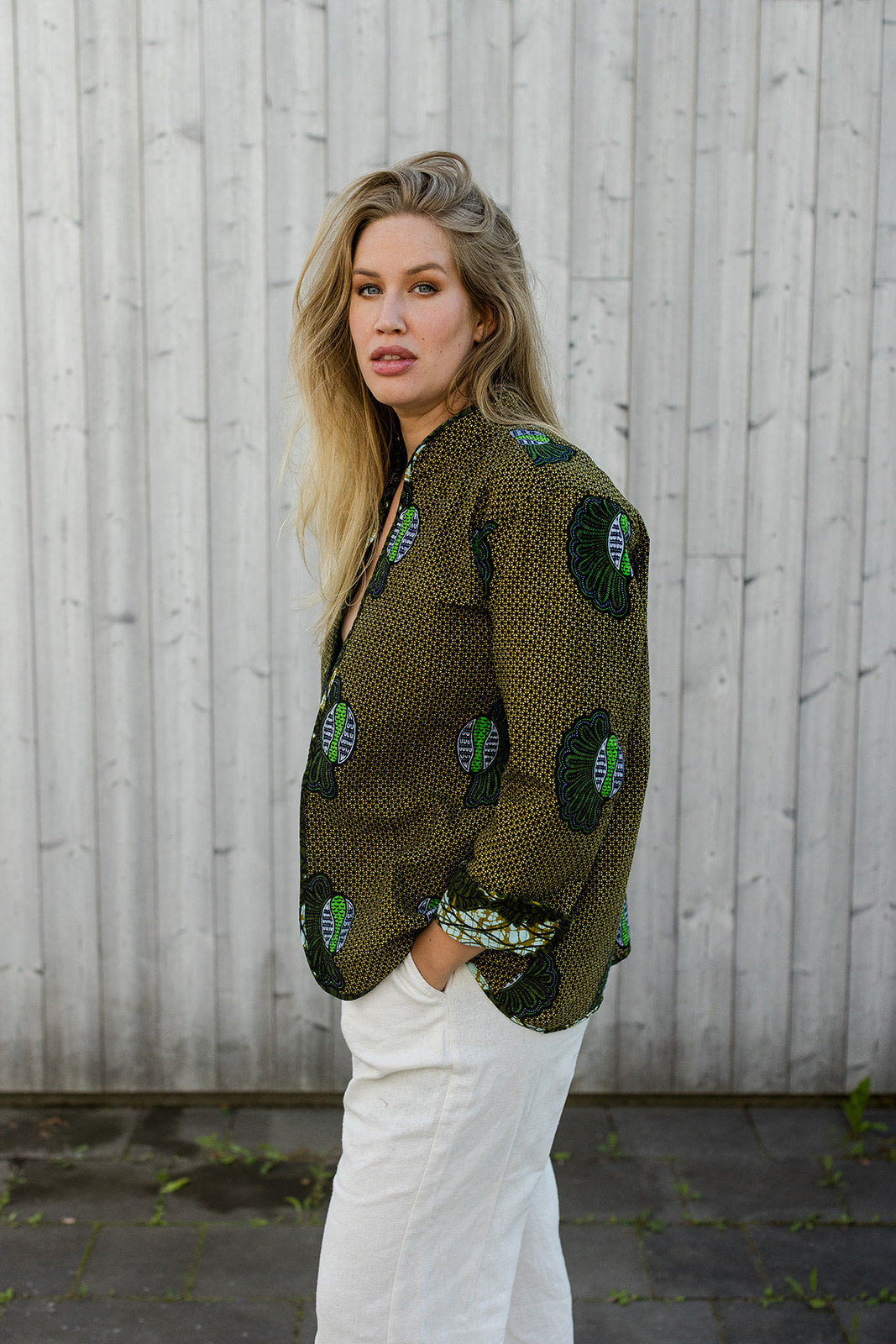 Our Reversible Wax Print Jacket is designed with a generous cut for layering and comfort. Choose your size based on how you like to wear your jackets — more fitted or more relaxed. A versatile statement piece with an elegant silhouette and relaxed fit. Fully reversible, each side reveals a bold wax print for two standout looks in one. With practical pockets and thoughtful tailoring, it layers effortlessly — light for summer evenings, warm under winter coats. Its classic cut and quality craftsmanship mean it’s made to last, while the vibrant Mustard Leaf fabric keeps it anything but ordinary. Handmade by Omega — one of Ndara’s skilled artisans.