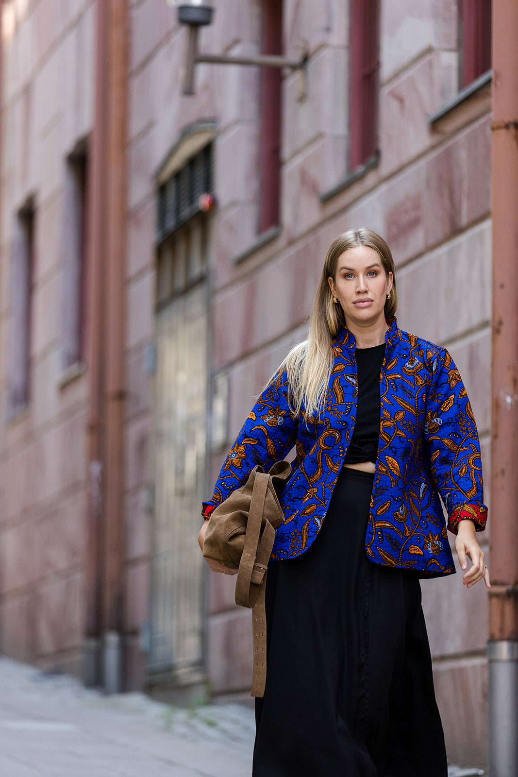 Our Reversible Wax Print Jacket is designed with a generous cut for layering and comfort. Choose your size based on how you like to wear your jackets — more fitted or more relaxed. A versatile statement piece with an elegant silhouette and relaxed fit. Fully reversible, each side reveals a bold wax print for two standout looks in one. With practical pockets and thoughtful tailoring, it layers effortlessly — light for summer evenings, warm under winter coats. Its classic cut and quality craftsmanship mean it’s made to last, while the vibrant Poppy Sea fabric keeps it anything but ordinary. Handmade by Omega — one of Ndara’s skilled artisans.