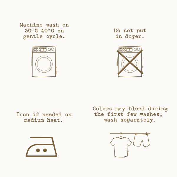 Care: Machine wash cold on a gentle cycle. Do not tumble dry. Iron gently. Colors may bleed during the first few washes — wash separately.