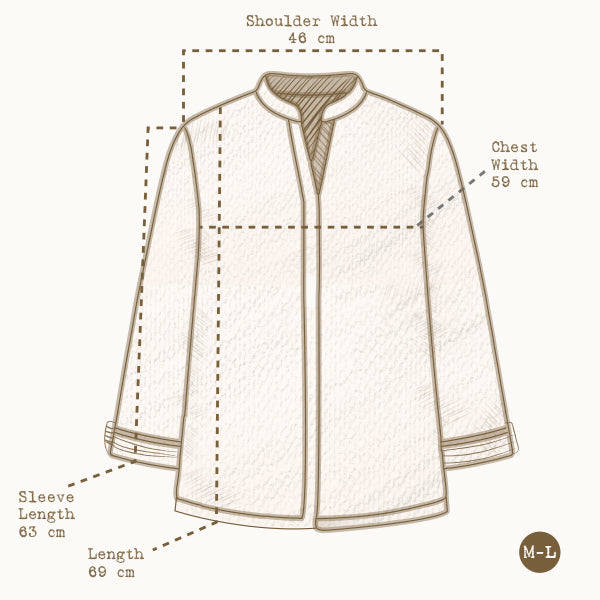 This item is 100% handmade and one of a kind — there may be slight variations of a couple of millimetres from the size chart.