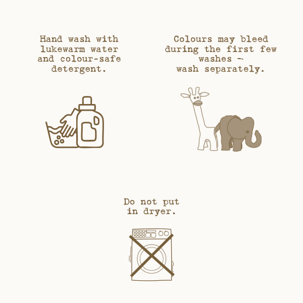Hand wash with lukewarm water and color-safe detergent.