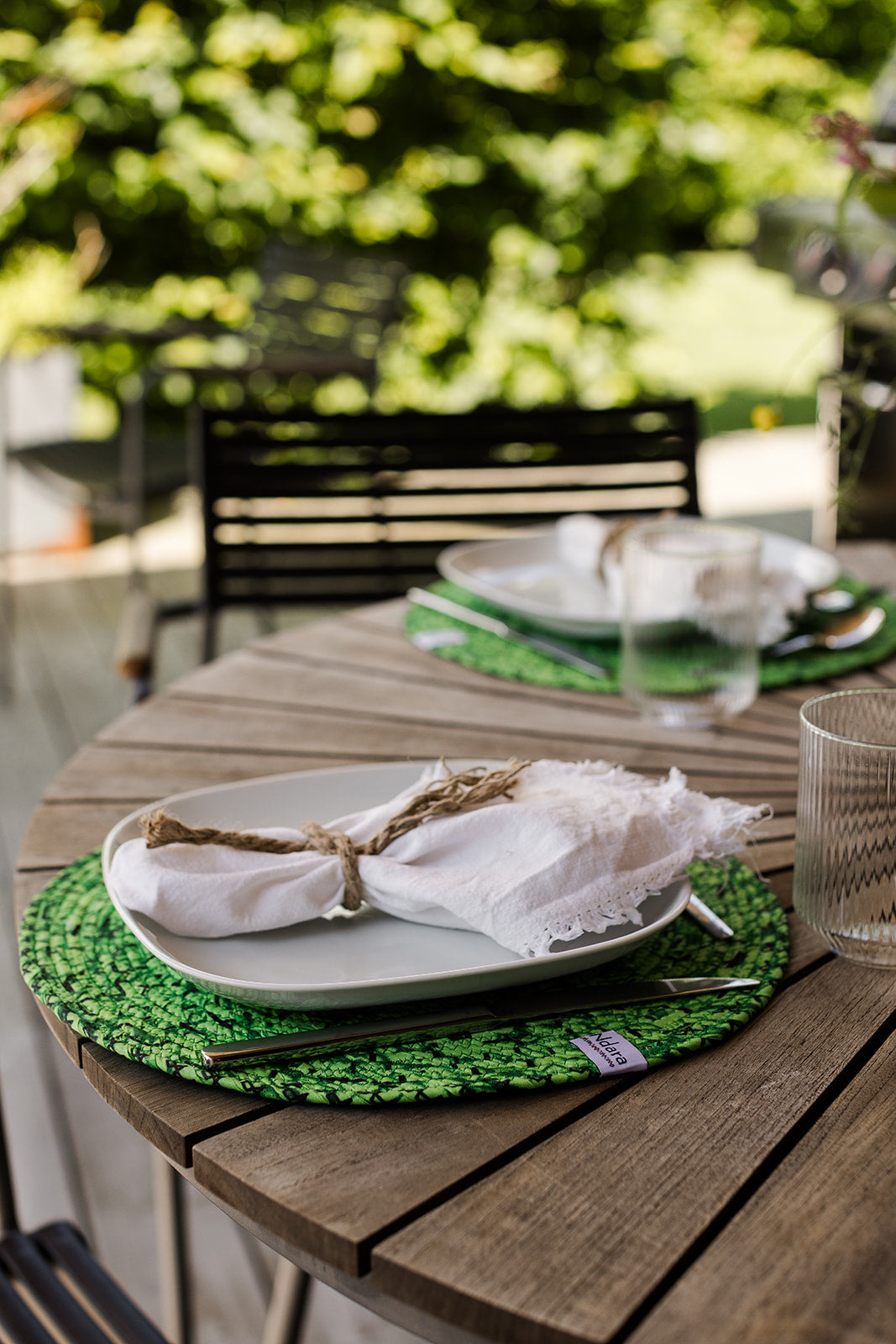 Spot clean with a sponge, lukewarm water, and mild laundry detergent. For deeper cleaning, soak in a basin or sink with lukewarm water and detergent, then gently scrub. Lay flat to dry. Iron as needed to restore shape and crispness.