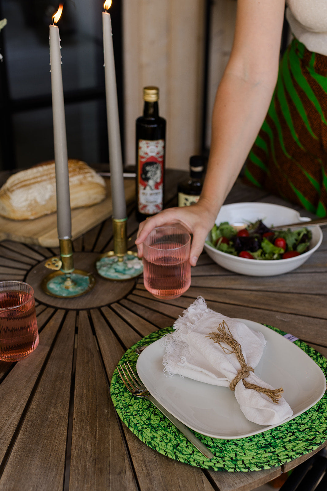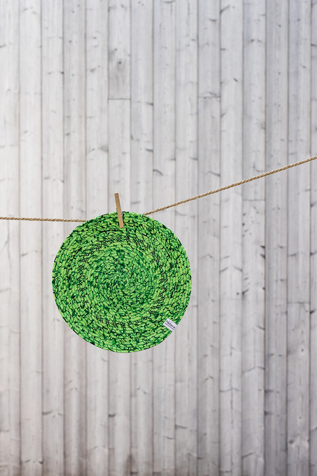 Crafted by hand from twisted strands of wax print fabric. These round placemats are stitched together using a tight zigzag technique that creates a sturdy, durable surface. Bold in color and texture, they bring a unique flair to any table setting.